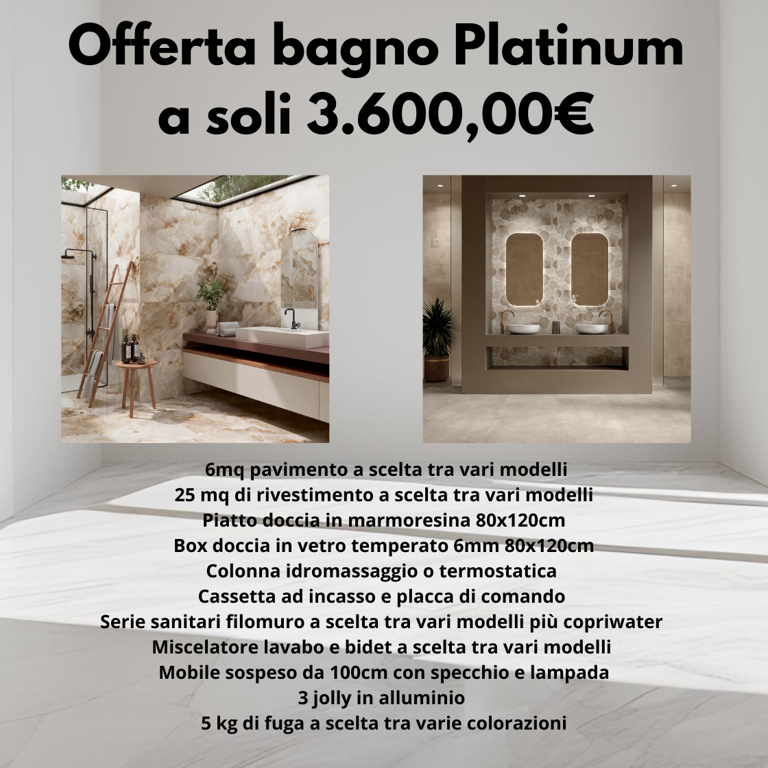 Trasforma il tuo bagno in un ambiente esclusivo con questa offerta Platinum che include: